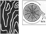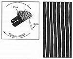 - Rotary slicing yields wild grain patterns and wide flitches. In some species rotary cuts are available as a whole piece face without any splice lines. This cut follows the log's annual growth rings, providing a generally bold random appearance. Matching of grain or figure from panel to panel is unlikely. The log is mounted centrally in the lathe and turned against a razor sharp blade, like unwinding a roll of paper.
